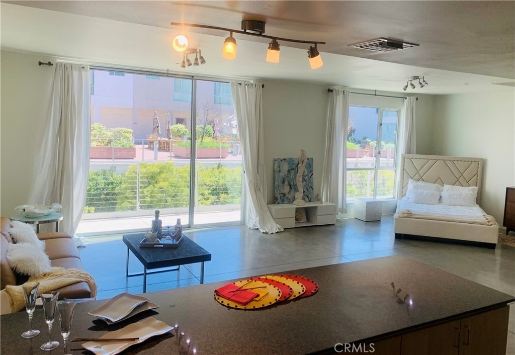 Centre Street Lofts, in the heart of downtown San Pedro's Historic Arts District, offers modern urban living in contemporary lofts. A controlled access building and garage. This third-floor unit is a true loft style with no dividing walls for the bedroom area, but the addition of a divider or even a pony wall can easily create the feel of a separate bedroom. A wall of tall windows provides abundant natural light and overlooks a beautifully landscaped courtyard with BBQs, dining, lounging, and entertaining areas. High ceilings, gray industrial-style polished concrete floors. The oversized Kitchen has a generous-sized granite counter with bar seating for 6. Stainless steel appliances include a side-by-side refrigerator (not warranted), built-in microwave, gas cooktop, electric oven, and dishwasher. There is a walk-in closet and a hall closet that can easily be converted to a storage closet or a pantry. Also, a laundry closet with a European-style washer/dryer. There is a full bathroom and central heat and air. The secure garage has 2 assigned parking spaces (not tandem). The complex is meticulously maintained, and the landscaping is always picture-perfect. Pets are allowed with restrictions. Enclosed dog run. There are very few options to purchase a loft or condo in this artsy downtown area. Convenient location: minutes from the 110, the 405, and the bridges to downtown Long Beach. It's a short stroll to the waterfront and the new 6th Street Plaza. The immediate neighborhood boasts many restaurants, pubs, entertainment venues, plus a hip art scene. It's a pleasant stroll to the exciting new 42-acre West Harbor, which is anticipating a soft opening by the end of the year. It may also include a 6,200-seat amphitheater, many new dining options, a brewery, and many other features, including pickleball and a dog park. Exciting times are ahead for Downtown San Pedro! Agent/Co-Owner.
