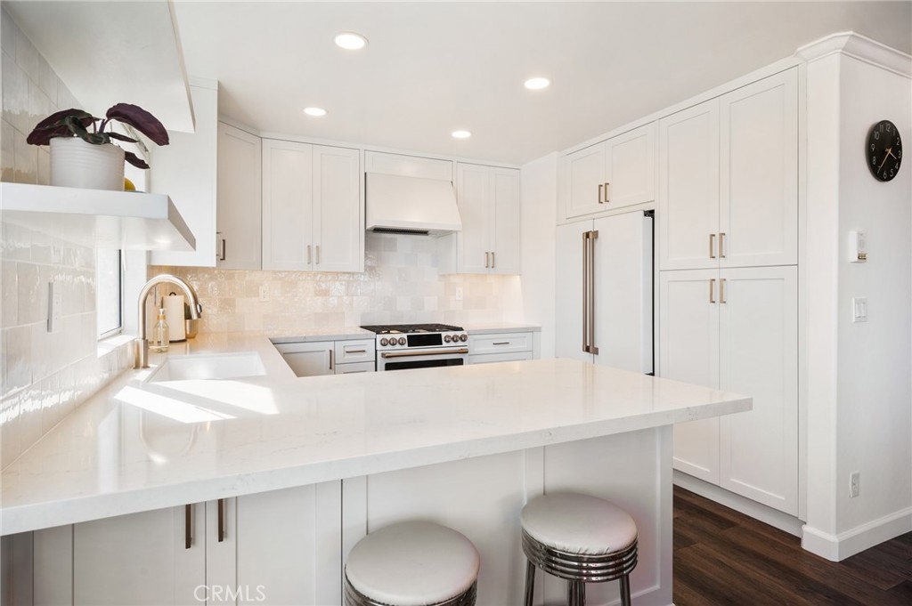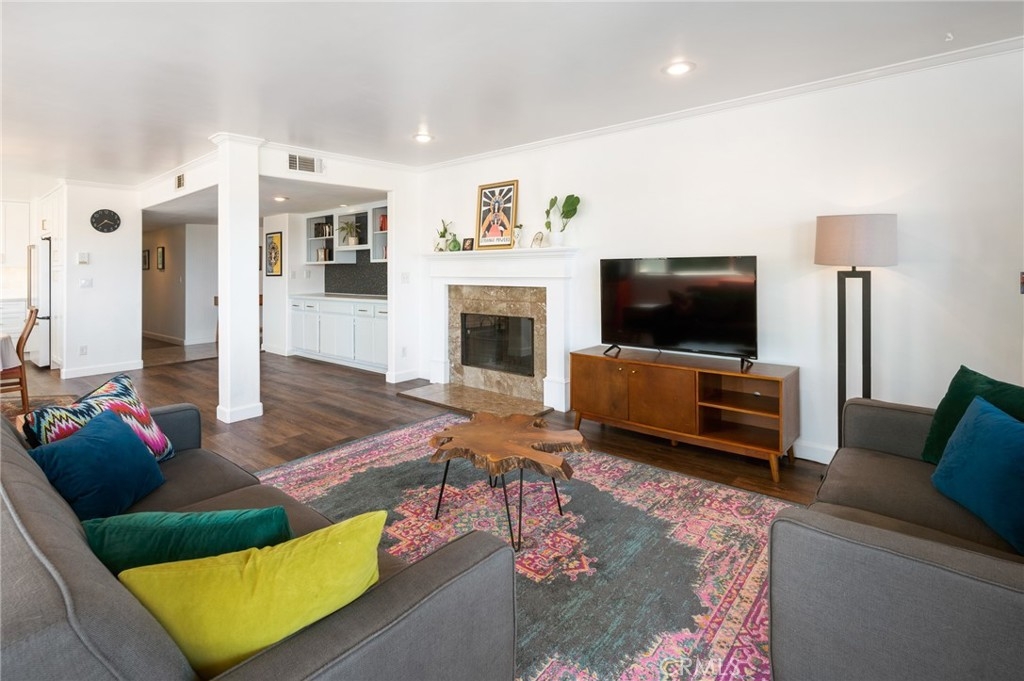 Welcome to 3130 S Peck Ave #5! This 3 bedroom, 2 bathroom home is in the beautiful Point Fermin neighborhood in San Pedro. As you enter the property you are immediately greeted with unobstructed views of the Los Angeles Harbor and beyond! With floor-to-ceiling sliding glass doors to the balcony, the living room flows effortlessly into an indoor-outdoor living space perfect for summer entertaining. Or in the colder months, you can enjoy the gas and wood-burning fireplace while watching the ships come in. This open concept area leads into a dining space and a beautifully remodeled kitchen featuring Quartz Countertops, custom Shaker Style cabinets with slow close features and under cabinet lighting, and designer hardware. The highlight of this beautiful kitchen is brand new Cafe appliances - Double Oven with Range, Vent Hood, and Refrigerator, which are all wi-fi enabled. Down the hall, you will find two bedrooms, the guest bathroom, and laundry room. Both bedrooms have ample closet space and large windows. The guest bathroom was recently updated with new fixtures, and walk-in shower. The laundry room fits side by side washer and dryer with both gas and electric hook-up available. At the end of the hallway, you come to the primary bedroom with attached bathroom. This bathroom boasts double sinks with quartz countertops, extra large (66'') cast iron soaker tub, delta fixtures, shaker style vanity with soft close doors and ottimo tile. With fresh paint throughout, new LVP flooring, new central air and heat, double pane windows, updated light fixtures, custom blinds with a lifetime warranty, recessed lighting, and new baseboard and crown molding in the living areas this home is turn-key and ready to be enjoyed for years to come!