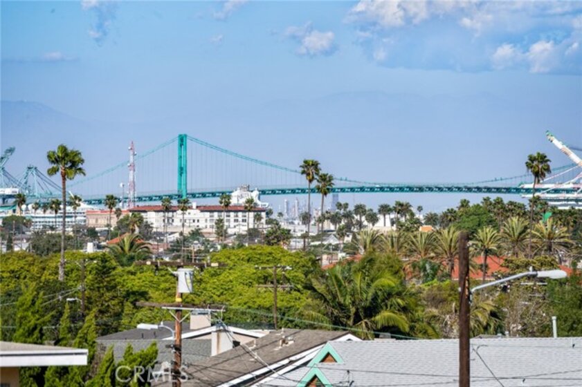 Experience breathtaking panoramic views from this 2 bedroom, 2 bathroom coastal condo, stretching from the Vincent Thomas Bridge to the historic Angels Gate Lighthouse. The open-concept floor plan features a modern kitchen that flows seamlessly into the main living spaces, perfect for hosting. Step out onto the private patio to enjoy sunrises over the Pacific or front-row seats to spectacular 4th of July fireworks. The primary retreat offers a peaceful escape with an ensuite bathroom featuring a relaxing jetted tub. Additional conveniences include an in-unit washer/dryer and a gated garage with two tandem parking spaces equipped with a private EV charger. Whether watching the ships glide through the harbor or enjoying the coastal breeze, this home offers a unique vantage point of the port's beauty.