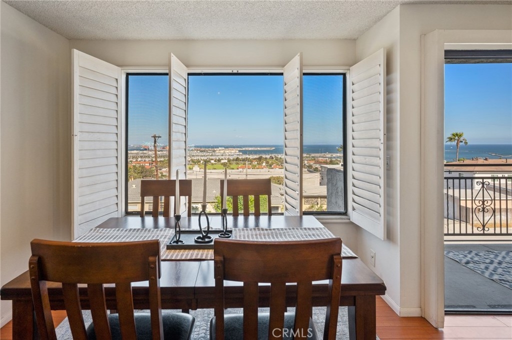 Sweeping views of the Pacific Ocean, harbor, and city lights welcome you to this inviting coastal retreat. Perfectly perched to capture the ever changing movement of ships gliding through the channel and the glow of sparkling evening vistas, this residence offers a peaceful escape in one of San Pedro’s most scenic enclaves. Inside, a comfortable, light filled layout is designed to maximize both the views and everyday livability. A cozy gas fireplace and wet bar anchor the living space, while large windows and a private balcony create a natural gathering place to relax, entertain, and enjoy a front row seat to Fourth of July fireworks. The kitchen is thoughtfully arranged for connection and convenience, featuring granite counters, stainless steel appliances, generous cabinetry, and ample workspace. It opens seamlessly to the spacious dining area, making the home feel warm, functional, and welcoming. Both bedrooms are well proportioned, offering excellent closet space with organizational features and quiet separation from the main living areas. A dedicated in unit laundry closet adds ease to daily routines. The gated subterranean parking structure provides side by side assigned spaces and a private storage room while the community enhances the relaxed coastal lifestyle with a pool, spa, exercise room, and high speed Wi Fi. Located in the sought after Palisades area of San Pedro, you’ll enjoy cool ocean breezes and effortless access to local favorites including Cabrillo Beach and Marina, Point Fermin Park, Angels Gate Park/Korean Friendship Bell, the downtown arts district, and the highly anticipated West Harbor waterfront development. Move in ready and beautifully positioned, this residence offers a rare blend of coastal serenity, everyday comfort, and a coveted Palisades address — an exceptional opportunity at an accessible price point. With no sales in this 49 unit community for the past three years, opportunities here are truly rare — don’t let this one pass you by!