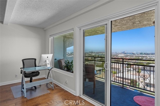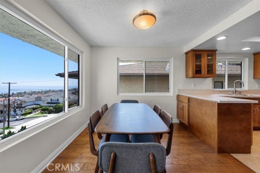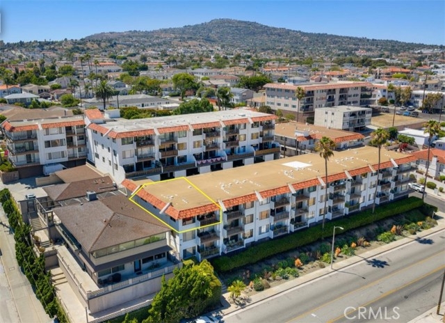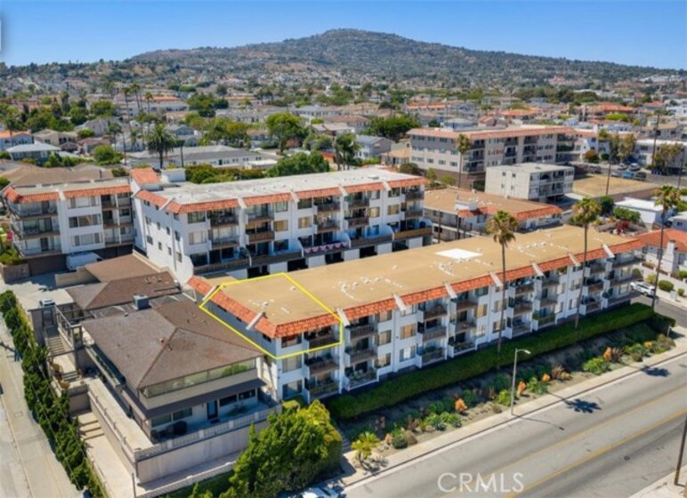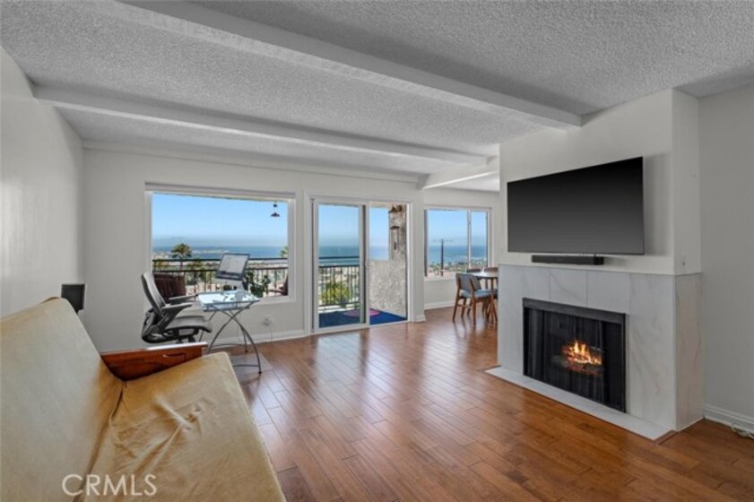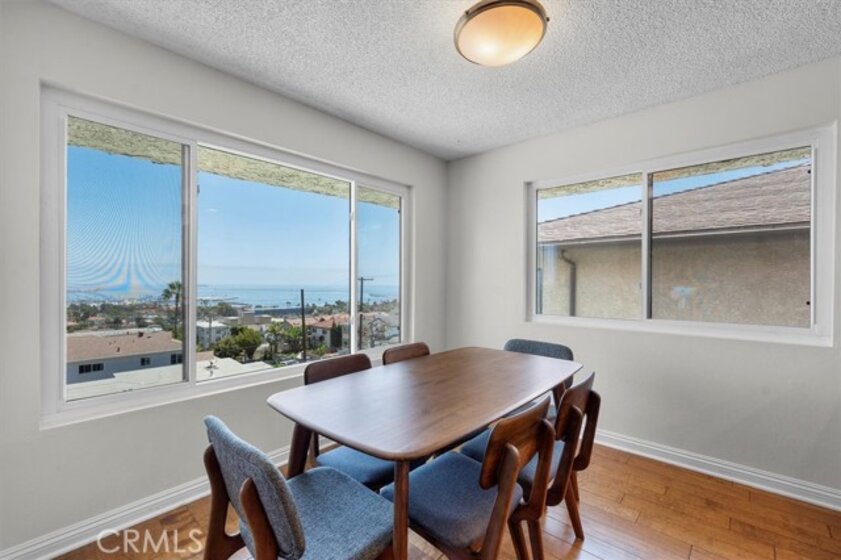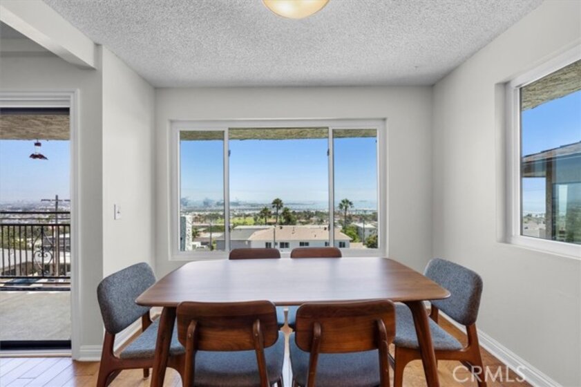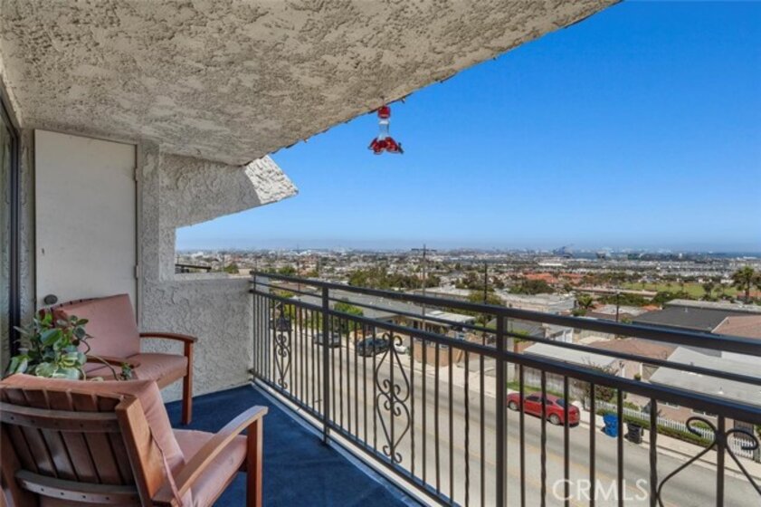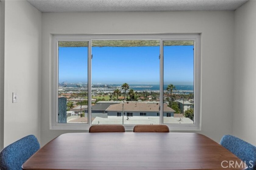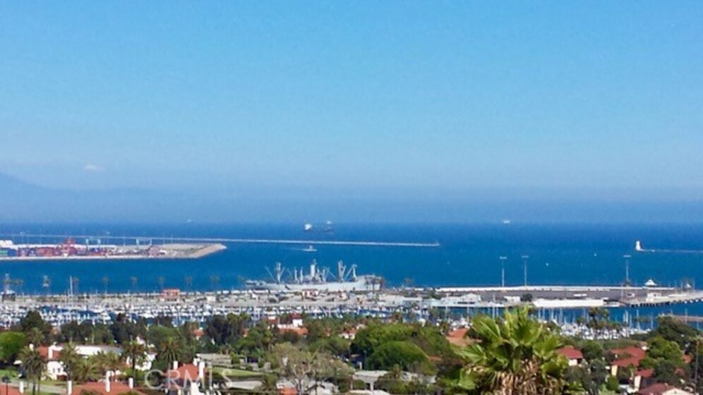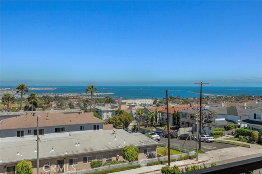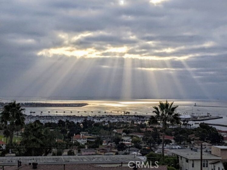 Unobstructed, panoramic views of the ocean, harbor and mountains from this front buildings corner penthouse end unit. Rarely available top floor 2bed, 2 bath in Bay View Terraces in the Palisades of San Pedro. One shared wall. Remodeled kitchen with custom cabinets, quartz countertops, stainless steel appliances, recessed lighting, tile flooring. Upgraded energy efficient double pane windows that will keep you cool in the summer, warm in the winter and whisper quiet when closed. Spacious primary bedroom with en suite bath, frameless glass shower and modern finishes. Second bedroom is generous in size. Beautiful engineered hardwoods, tile, vinyl (guest bath). Freshly painted. In unit laundry with Speed Queen washer and dryer. The unit comes with 2 side by side parking spaces and overhead storage. Complex amenities include: pool, spa, gym, free high speed internet (1gig!), beautiful grounds. Conveniently located near Cabrillo Beach Point Fermin, Korean Friendship Bell and the new multi million dollar development West Harbor. Don’t miss this rare opportunity for a view that will bring you decades of peace and relaxation as you gaze over the ocean.