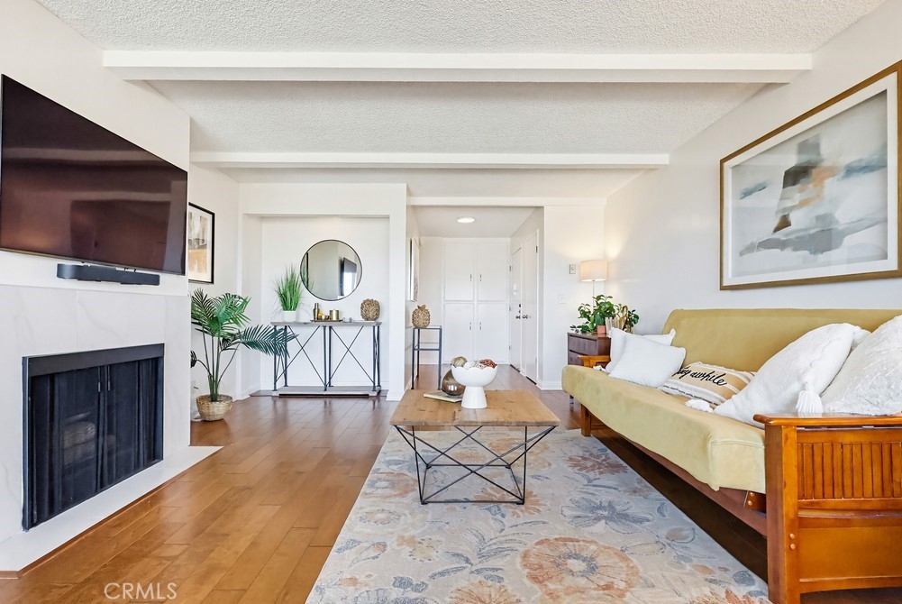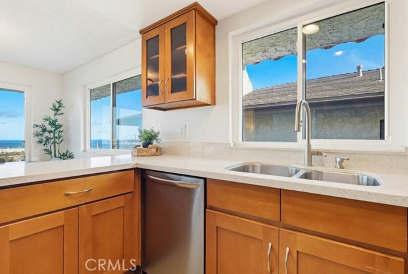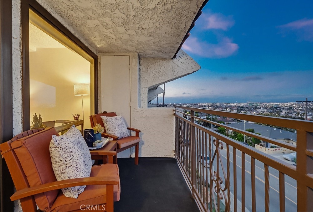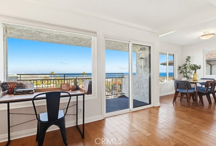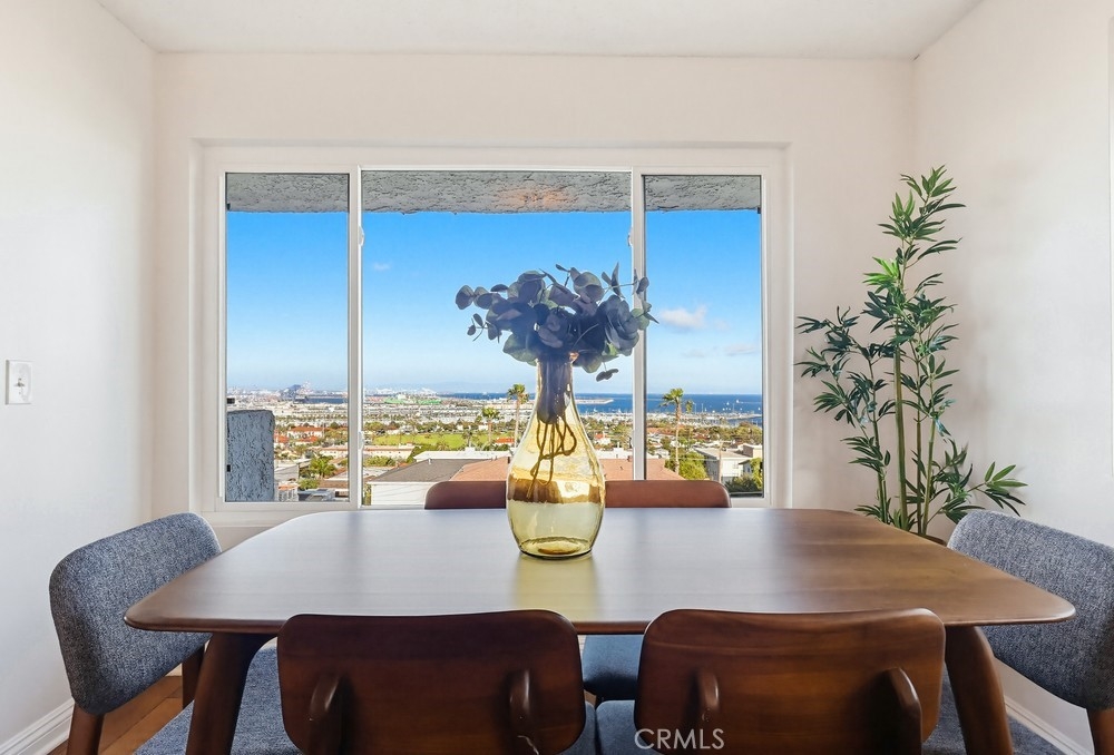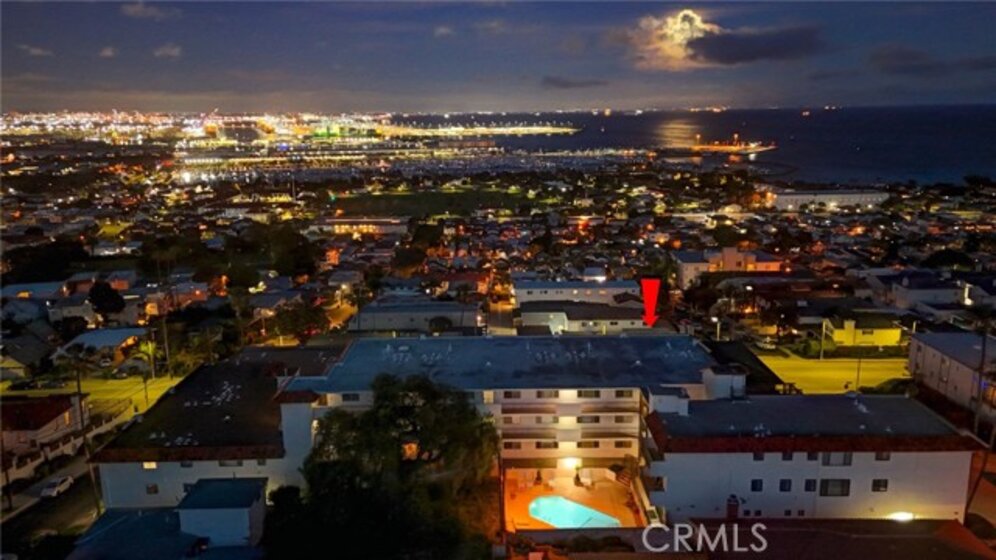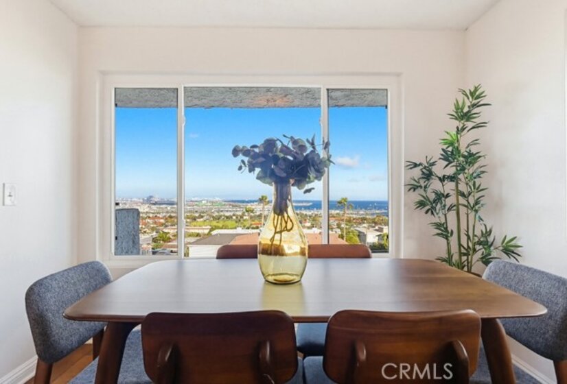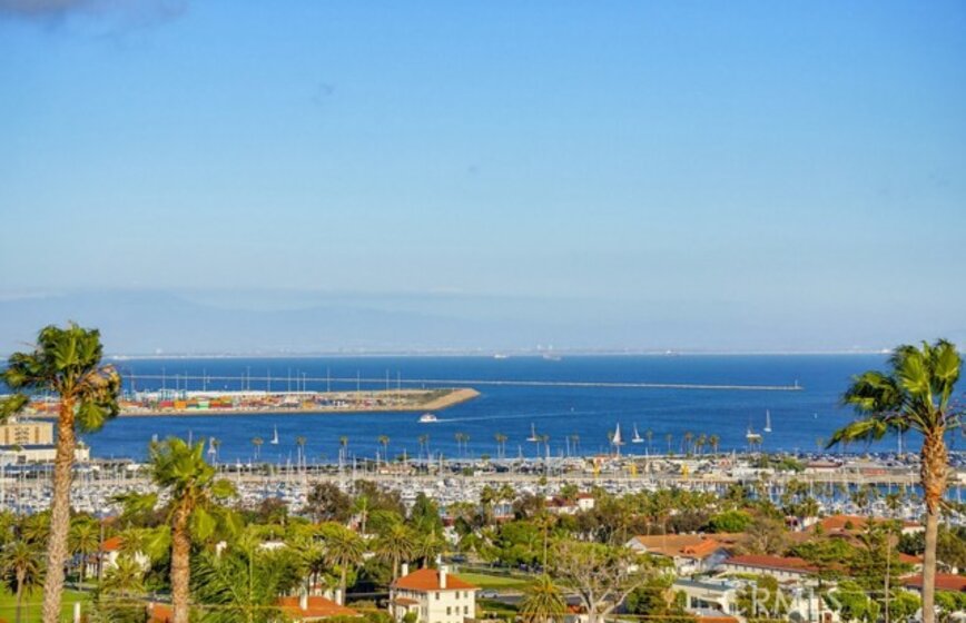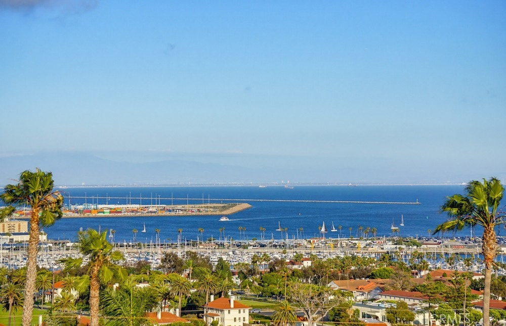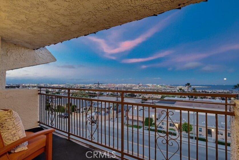 Imagine waking up each morning to a stunning sunrise, watching ships pass through Angels Gate, or winding down at night with city lights sparkling below. From this top-floor end unit in Bay View Terrace, the views stretch across the city, harbor, mountains, and out to the Pacific Ocean. The living room, dining area, kitchen, and private balcony all take full advantage of the panoramic scenery. On the 4th of July, you can even enjoy multiple fireworks shows without leaving home. With no one above you and only one shared wall, this upgraded residence offers both comfort and privacy. Inside, you’ll find engineered hardwood floors, a cozy fireplace, and a remodeled kitchen featuring custom wood cabinetry, quartz countertops, stainless steel appliances, recessed lighting, and tile flooring. Double-pane windows help keep the home quiet and energy efficient year-round. The spacious primary suite includes a tastefully updated three-quarter bath with quality tile finishes and fixtures. A second bedroom is equally roomy and sits next to a full hall bathroom. There’s also a conveniently located laundry closet in the main hallway. This unit includes two side-by-side parking spaces plus overhead storage. Community amenities feature a pool, spa, gym, free high-speed internet, and well-maintained grounds. There's also an elevator to take you fron the parking garage to the walkway that leads to the unit so no need to navigate stairs with this one. Located in the sought-after Palisades area of San Pedro, you’ll enjoy cool ocean breezes and easy access to Cabrillo Beach, Point Fermin Park, the Korean Friendship Bell, and the upcoming West Harbor waterfront development. Move-in ready and priced under $600,000, this is a rare opportunity to own a home with truly breathtaking views at an afforable price. Don't miss it!!