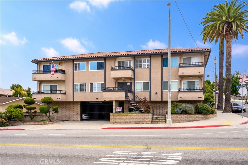 Huge price reduction! You must come see this beautiful turnkey studio condo with views of the mountains and Vincent Thomas Bridge. This 397 sq.ft. top floor unit is light and bright, has tons of storage, and features a remodeled kitchen with stainless steel appliances (refrigerator, stove, dishwasher and microwave) and granite counter tops. The upgraded bathroom features a marble counter with a beautiful top mounted sink, newer faucet, light fixture and tile floor. Additional features include crown molding, newer ceiling fan, plantation shutters, portable AC unit, two very large closets and an additional storage cabinet with your parking space in the parking garage. Building and garage are secured. Low HOA dues. From the balcony you can see Palos Verdes, Long Beach, the mountains and the bridge. And, you are only minutes to the beach, downtown San Pedro and the 110 freeway. Must see. Huge price reduction!