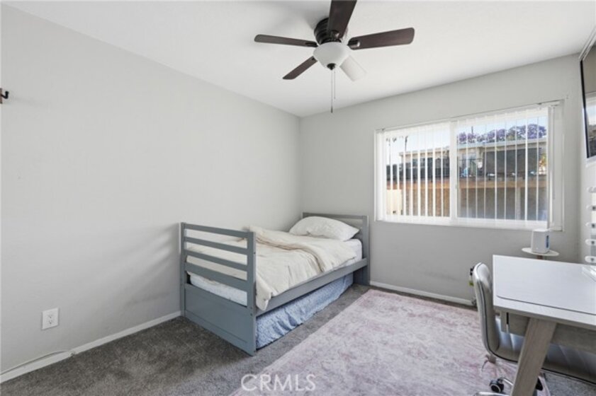 Sun-filled and move-in ready in the Vista Del Oro community of San Pedro. Bright 2 bedroom, 1 bathroom condo with south facing windows and a private patio that gets great light all day. Clean and turnkey kitchen with stainless appliances and recessed lighting opens to a functional layout with a dining area and seating at the kitchen peninsula. Both bedrooms feature newer carpet and mirrored closets. Bathroom updated with newer vanity and tub shower. Dual-pane Milgard windows throughout. In-unit laundry adds everyday convenience. Gated parking with two side-by-side spots, guest parking, and extra storage. DM me for details or a private tour.