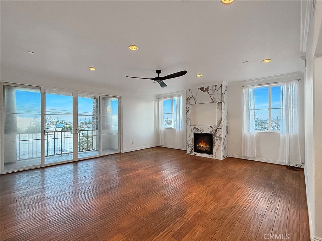 The Trophy of the Neighborhood, perched on the top floor, this show-stopping coastal residence delivers ocean views, elevated finishes, and a lifestyle that feels straight out of a luxury magazine. Spanning approximately 1,090 sq ft, this freshly painted 2-bedroom, 2-bath condominium is drenched in natural light and finished with rich wood and Italian tile floors, recessed lighting, and a striking Italian ceramic tile fireplace. Step through the sliding glass doors onto your private balcony and take in calming ocean views. The kitchen commands attention with granite counters and backsplash, stainless steel appliances, gas stove, and custom wood cabinetry, while both bathrooms feature tile flooring, granite finishes, and glass-enclosed tiled tubs. The primary suite impresses with a walk-in closet and built-ins. Complete with in-unit laundry, two side-by-side underground parking spaces, and a rooftop deck boasting panoramic views, workout space, and entertainment seating, this is not just a home - it’s the coastal upgrade you’ve been waiting for.