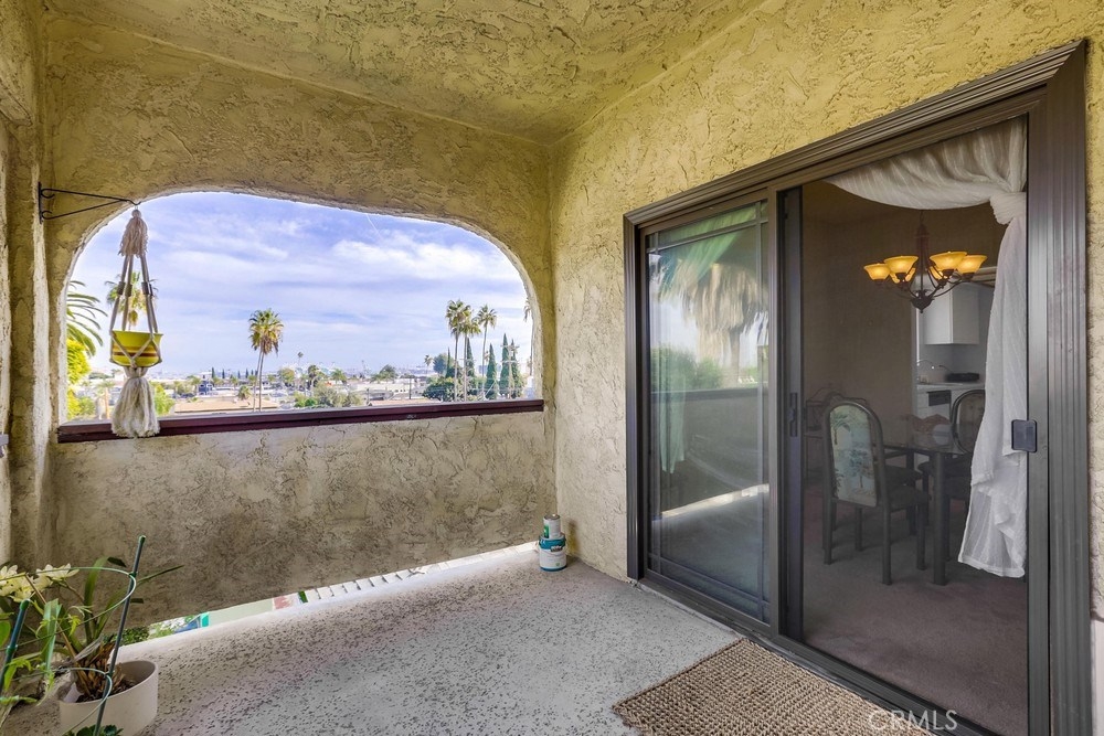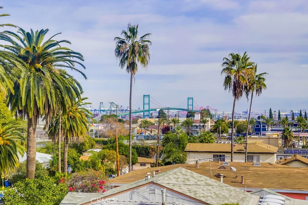 Situated on the top floor and favorably on the view side of the complex, this home has views of the Mountains, LA Harbor, and Vincent Thomas Bridge that light up at night. These views can be enjoyed throughout the entire unit from the private balcony in the front to the shared balcony off of the master bedroom in the back. With big windows throughout the home, there is plenty of natural light that flows in during the day. The kitchen has been updated with new quartz countertops, soft closing cabinets and drawers, and new floors. The kitchen is conveniently located near the dining room making it easy to serve dinner, as well as the private balcony which will come in handy to bbq or enjoy a warm cup of coffee while looking at the view. The other side of the kitchen leads to the spacious living room with big windows and a cozy brick fireplace for the winter time. Continue down the hallway with closet space for storage and a laundry room leading to the first bedroom with sliding closet doors and a full bathroom. The end of the unit reaches the private master bedroom with two large sliding mirror doors and an en suite bathroom. Sliding glass doors open to the shared balcony and stairs leading down to the shared yard. There are 2 car tandem parking spaces in the shared garage and a security gate. This home is within a mile to Downtown San Pedro filled with great coffee shops, restaurants, stores, and night life; and cannot be much closer to the freeway which is great for commuters!